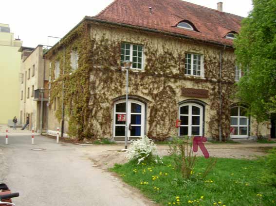 | Wir arbeiten in den Räumen des Zirkus Zambaioni. Ein sehr schöner Raum mit Fußbodenheizung und viel Licht. Das Gebäude steht etwas versteckt. Kidojo ist unter dem Dach untergebracht und steht groß auf der Seite des Hauses. Hier von der neuen Stuttgarterstraße aus gesehen. |